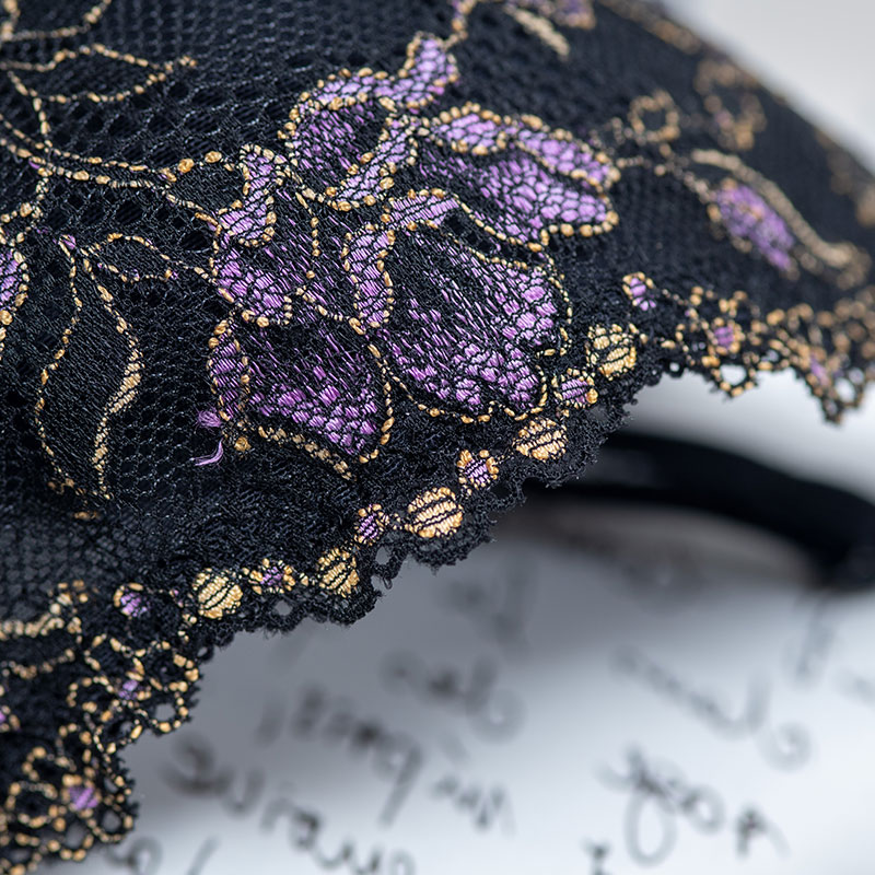 Die opulente 3-farbige japanische Spitze und das semitransparente Obercup zitieren die sinnlich-laszive Seite der Französin – und schlagen ein neues Design-Kapitel bei Rosa Faia auf.