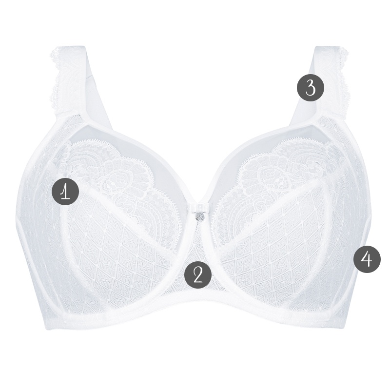 This cup construction guarantees an excellent fit, a beautiful breast shape and above all perfect stability. The side panel in the outer cup provides the bust with additional support and stability.