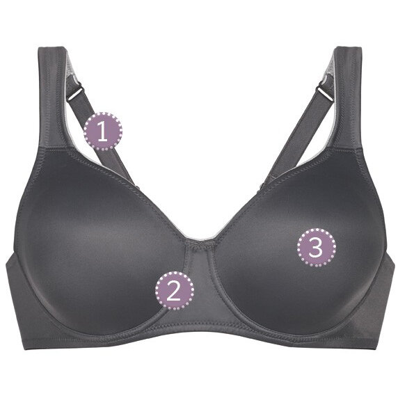 The cups are double-layered, seamless, moulded and made of elastic microfibre. They are elastic enough to adapt to any breast shape and are super comfortable on the skin. In larger sizes, an invisibly incorporated material ensures excellent hold and gentle support.